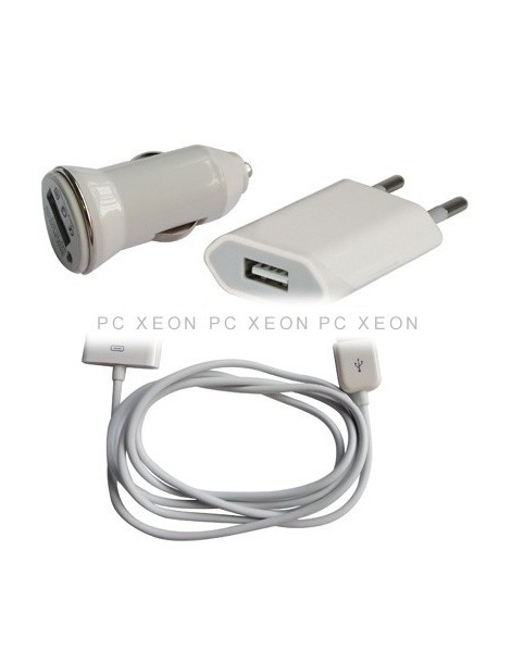 3-in-1 charger that includes USB and Charging cable, Car charger and Home charger.