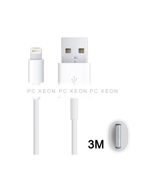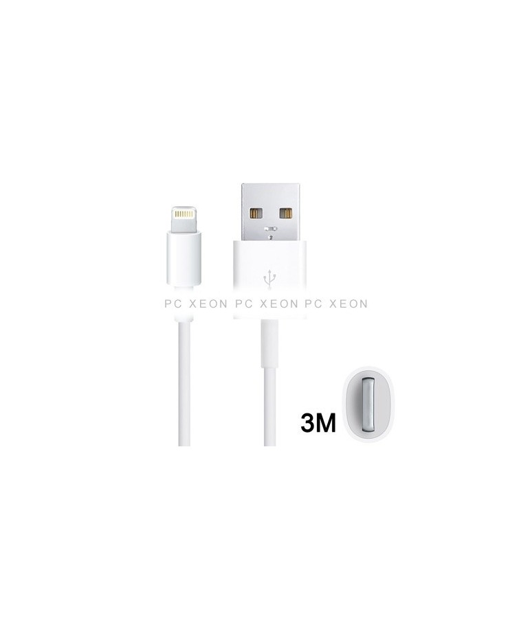 Lightning Cable Charge and Data ( iPhone 5 Connector, iPad 4 Retina, iPad Mini, iPod Nano 7th, iPod Touch 5th) to USB. Length 3 Metros . White color.