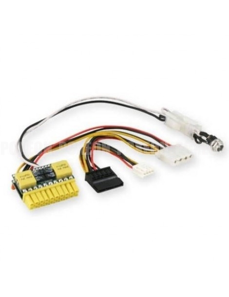 Es compatible con todas las placas base Mini-ITX. Se conecta directamente al conector de alimentación de la placa Plug de 20 pines. Existe un cable opcional para obtener el conector P4 de 12V que algunas placas necesitan.