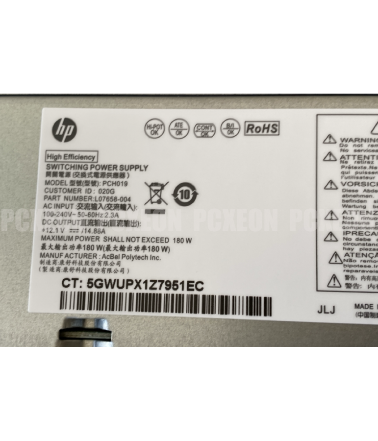 Power Supply HP Slim Desktop PC S01-PF Series 180W L07658-004 PCH019