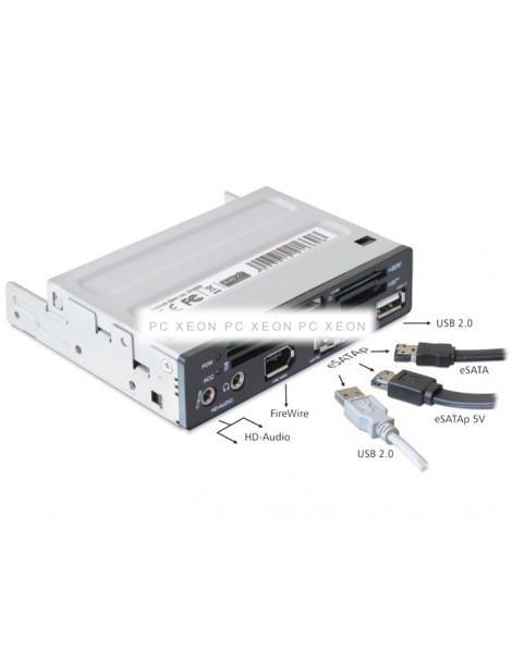 The card reader Delock can be installed in a unit space of 3.5'' from your team. In addition to its classic function, it offers you a Power Over eSATA port, a USB 2.0 port, a FireWire port, an HD-Audio input and output.