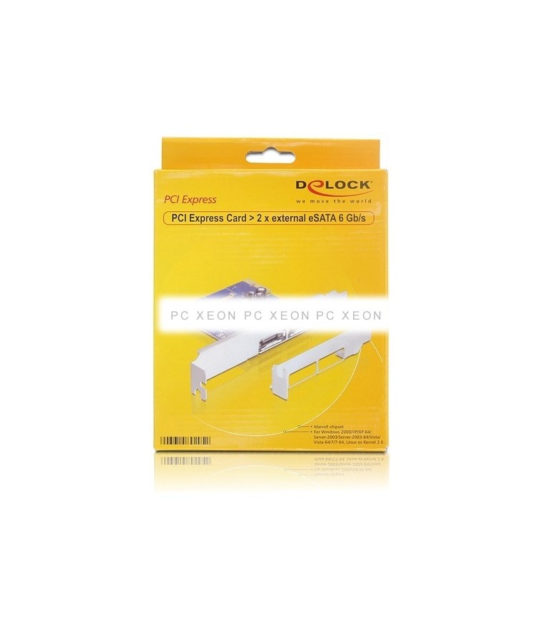 The PCI Express card Delock expand your PC with two external eSATA ports. You can connect devices such as external boxes, hard drives, DVD drives, etc. to the card.