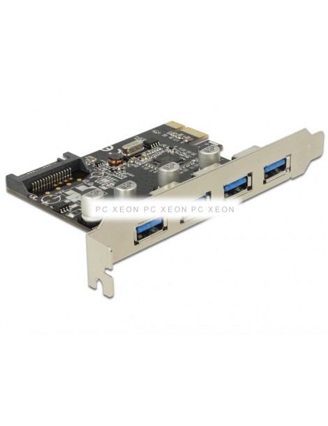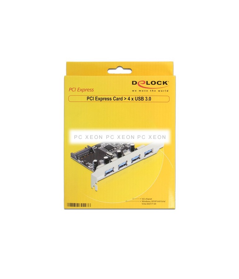 The card Delock PCI Express expands your PC with four external USB 3.0 ports. You can connect USB devices, docking station, card readers, external housing etc. to the card.
