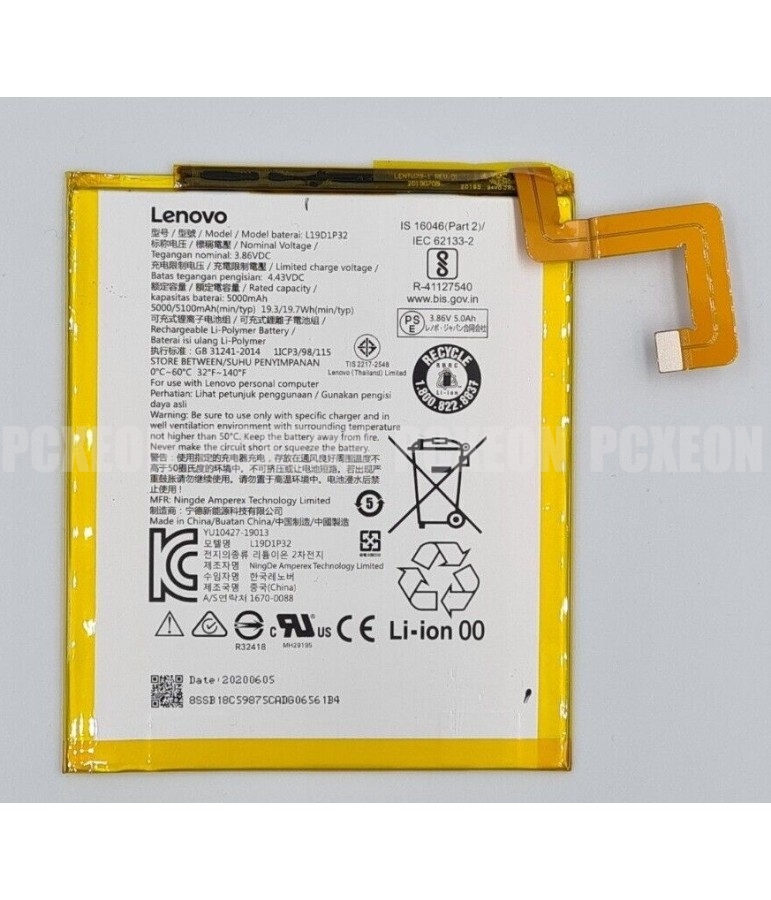 Batería Original Lenovo Li-ion, 3.86 Volt., 5000mAh, 19.3W.