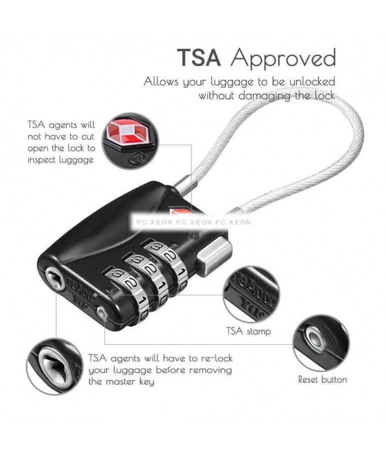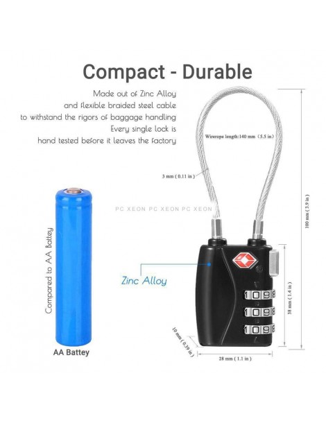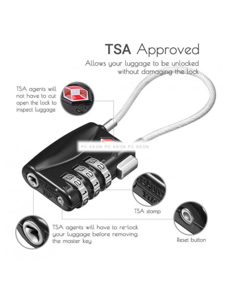 Approvato il lucchetto di sicurezza TSA, che è principalmente realizzato in materiale resistente in lega di zinco. Combinazione di una combinazione di 3 cifre personalizzata Osservazione Ideale per bloccare i bagagli, la cassetta degli attrezzi, la valigia, l'armadietto, lo zaino, ecc ... in modo sicuro e senza chiavi.