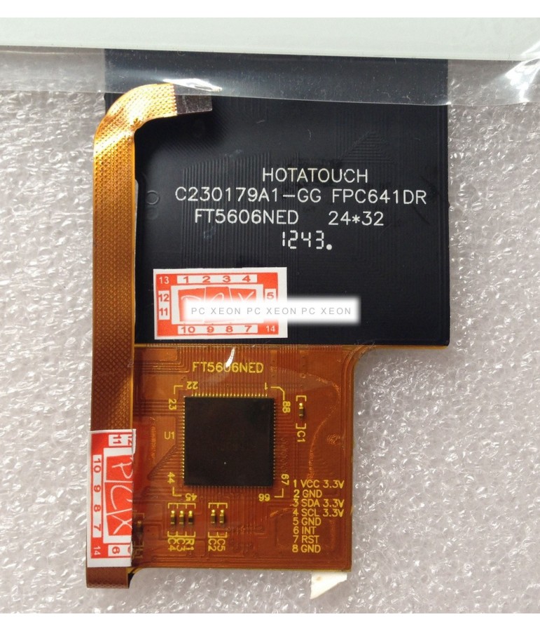 Parte : C230179A1-GG, FPC641DR, FT5606NED . Le misure : 230 mm x 179mm. Questa schermata include adesivi per l'installazione. Connettore a 8 pin. Colore bianco