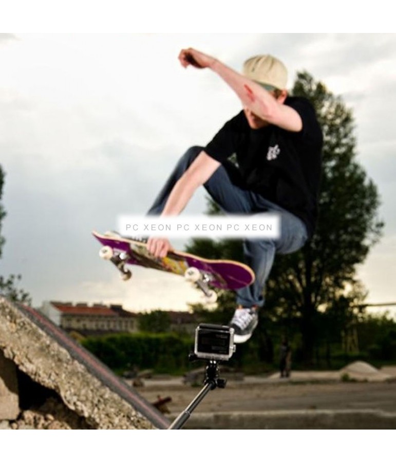 Tubo in lega di alluminio e cinturino regolabile da trasportare e utilizzare. La base della fotocamera è regolabile in varios Angoli. Include foro sul bastone per il telecomando. Si estende fino a 98 cm. Peso 260G.
