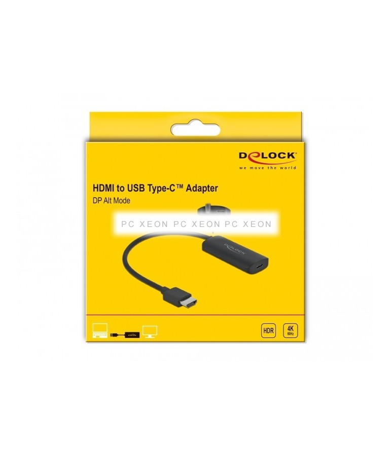 Questo adattatore Delock Permette la connessione di un monitor USB Type-C ™ a un'interfaccia HDMI gratuita di un PC o un laptop. L'adattatore sarà collegato al connettore HDMI del PC o del laptop e si collegherà con un cavo USB-C ™ esistente.