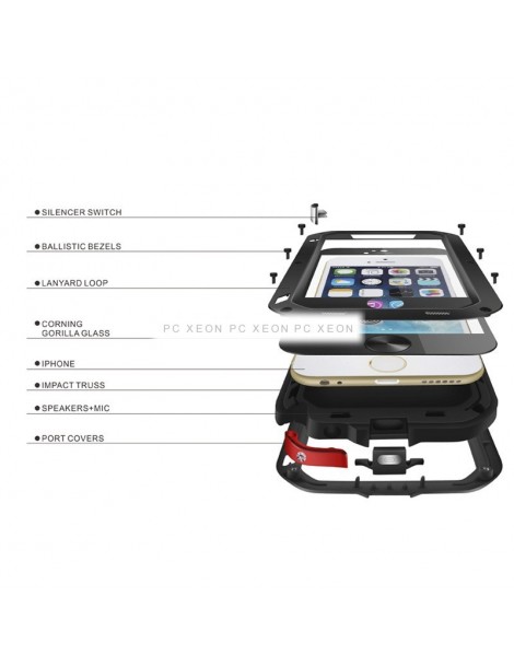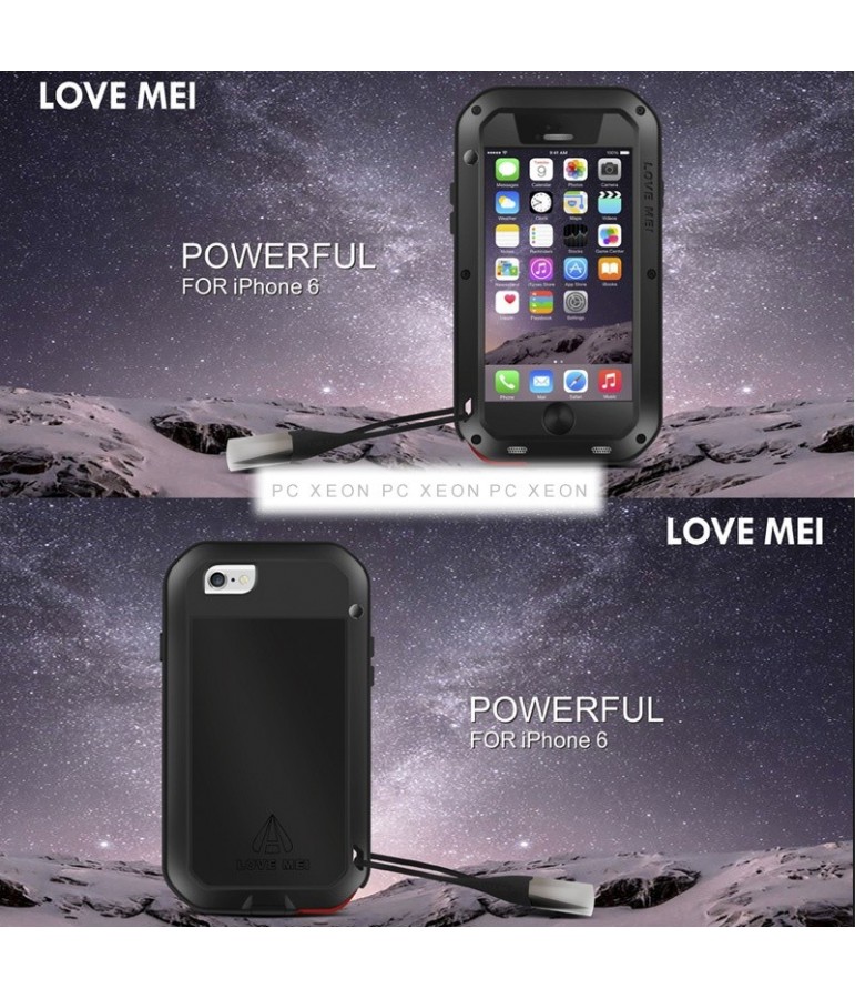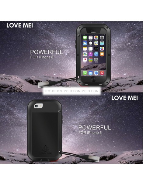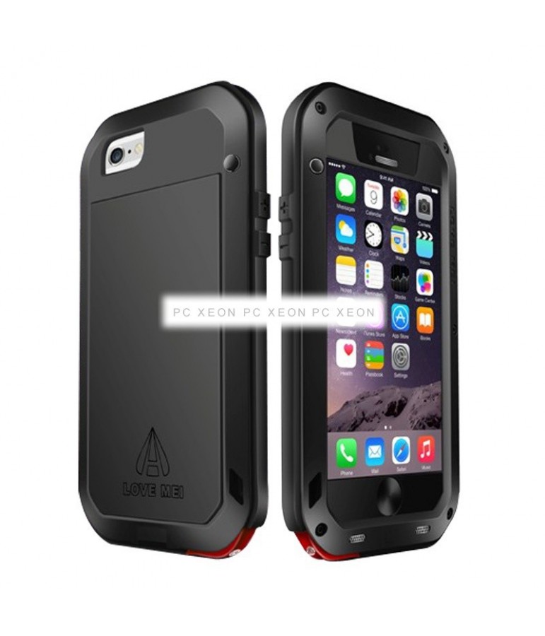 Alloggiamento in metallo ultrasottile amore mei antipolvere, acqua, colpi per nero iPhone 6. Materiale : Metallo + in silicone + vetro temperato.