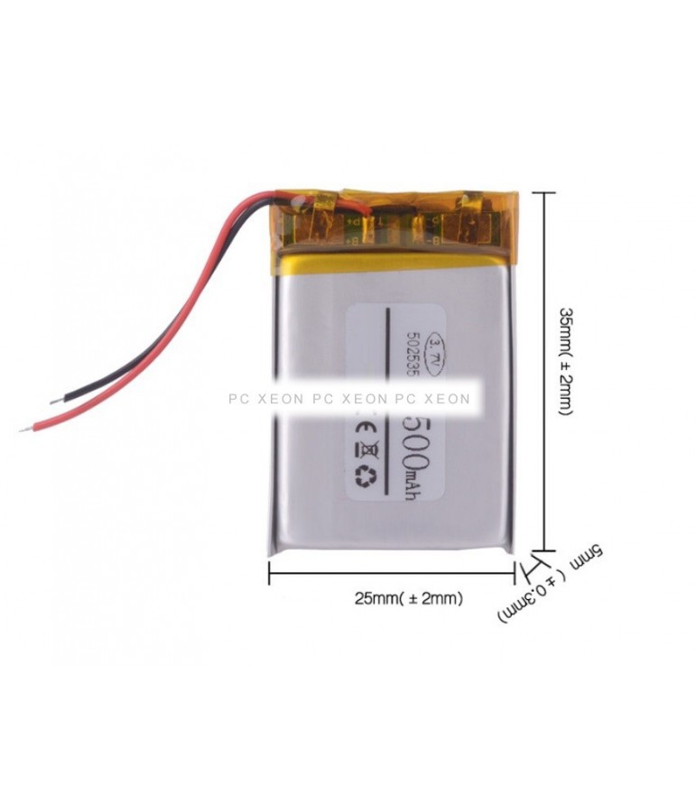 Bateria 3.7V 500mAh 35x25x5mm (sem conector)
