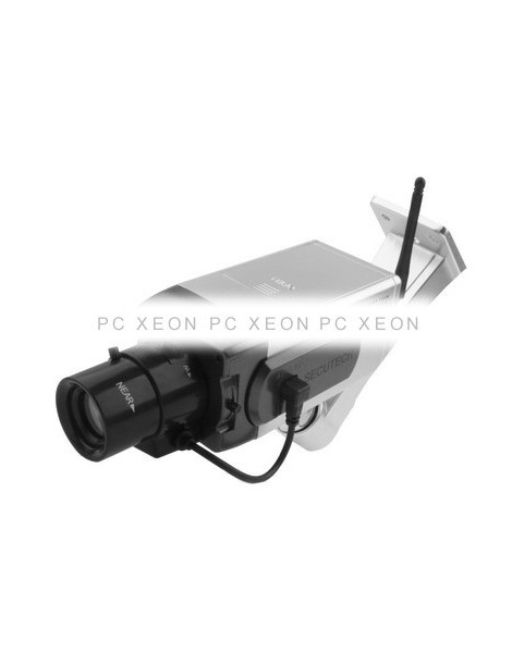 Simulou a câmera de segurança muito realista, para usar dentro de casa e exterior. Qualquer pessoa vai pensar que tem um sistema completo de vigilância por vídeo. Ajuda a prevenir ou detectar atividades suspeitas, colocando a câmera de segurança em um lugar certo e visível. Misturar com as verdadeiras câmeras e, assim, executar uma instalação mais segura com um custo mínimo.