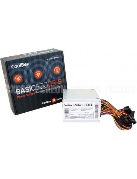 Fonte de energia CoolBox Basic500gr-de Com suporte para processadores Intel Haswell?, 12V tecnologia de trilho único, ventilador com controle térmico de velocidade, para uma ótima operação de resfriamento e silenciosa e ocp, proteções OVP e SCP.
