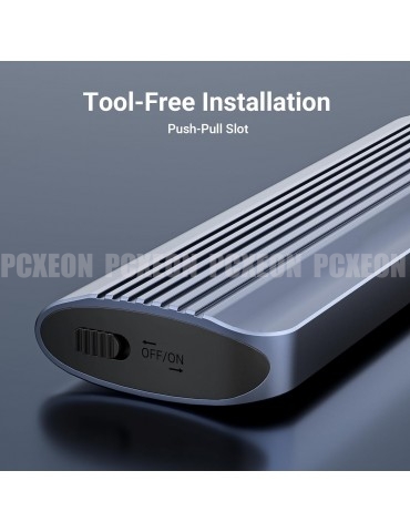 Instalação sem ferramentas: É fácil de operar que você não precisa de nenhuma ferramenta para usar esta caixa SSD, tudo o que você precisa fazer é mover o switch no lado da caixa, colocar a unidade no PCB pop-up e configurá-lo (2280 não precisa ser segurado) e, em seguida, deslize para dentro e deslize a chave para desligar.