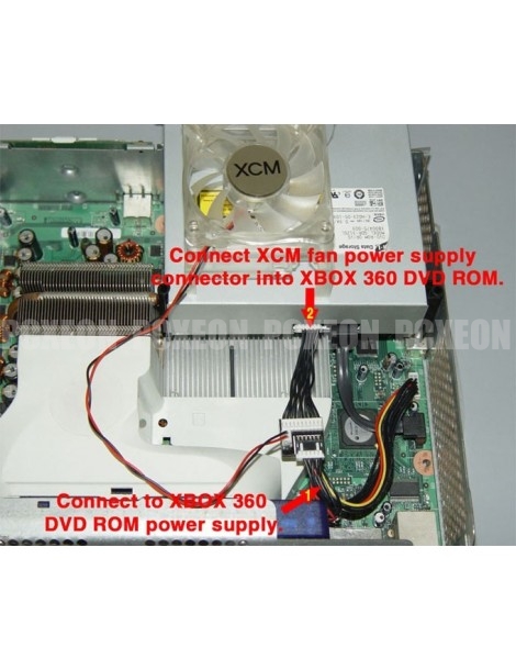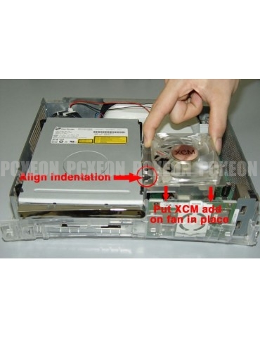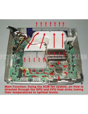Para maximizar o efeito do refrigerador de ar de alta velocidade, XCM Tire este ventilador extra com o qual reduza a temperatura ainda mais, entre 3 e 5 graus. Com este complemento, o refrigerador de ar de alta velocidade torna-se o sistema de refrigeração do Xbox 360 mais eficaz.